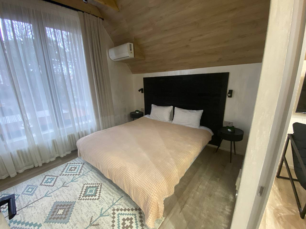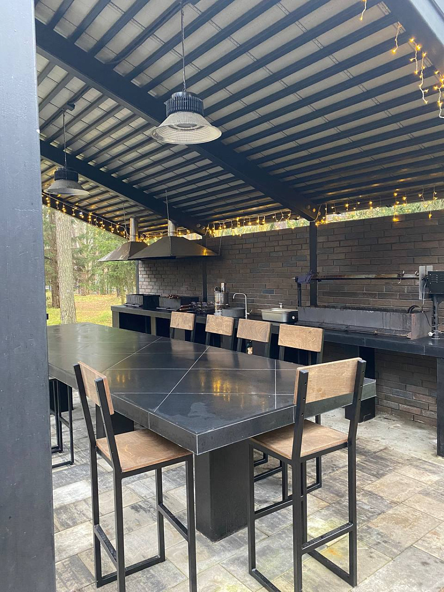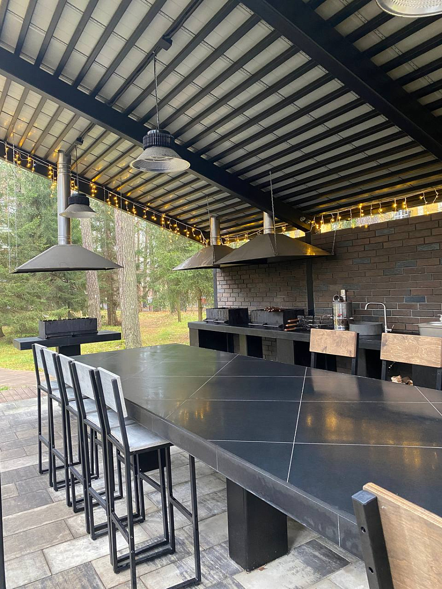 Закрытая со всех сторон внутренняя территория, имеется мангальная зона, беседка, парковка для автомобилей. В данный момент действуют три дома, есть раскладушки и детские кровати. Питание не предоставляется.