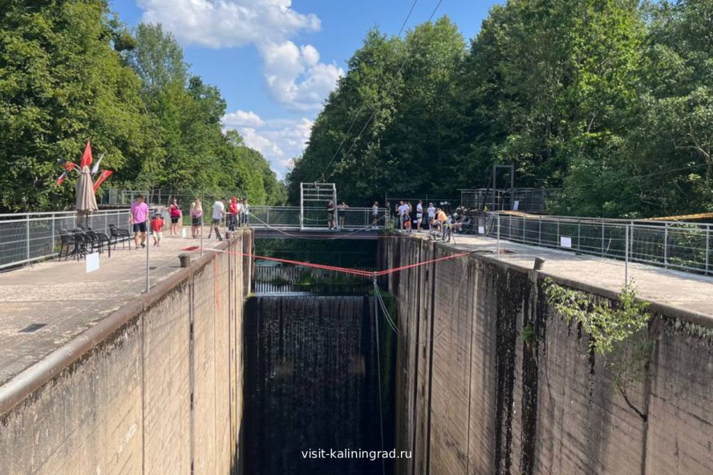 В 2025 году это индустриальное сооружение преобразилось. На Шлюзе №5 открылись кафе и оборудованная смотровая площадка . Здесь можно безопасно познакомиться с работой шлюза, выпить кофе с видом на просторы. А по выходным экстремалы могут попробовать себя в прыжках.Адрес: Правдинский р-он, пос. Озерки