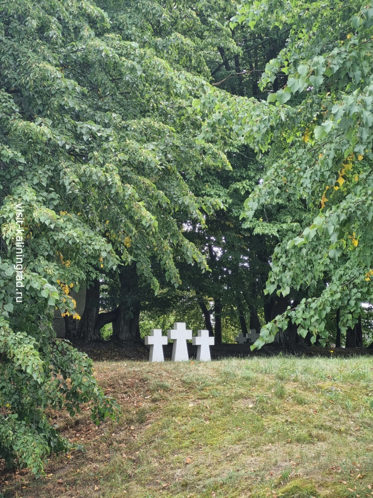 Мы прошли насыщенную половину пути. Здесь мы бы предложили воспользоваться каким-либо транспортом: велосипед или автомобиль, либо сделать привал перед переходом более 2-х км. Двигаясь по улице Черняховского, вы увидите Мемориал, братскую могилу 330 павшим советским воинам Второй мировой войны. Гердауэн был взят 27 января 1945 года войсками 28-ой армии и 3-го Белорусского фронта.