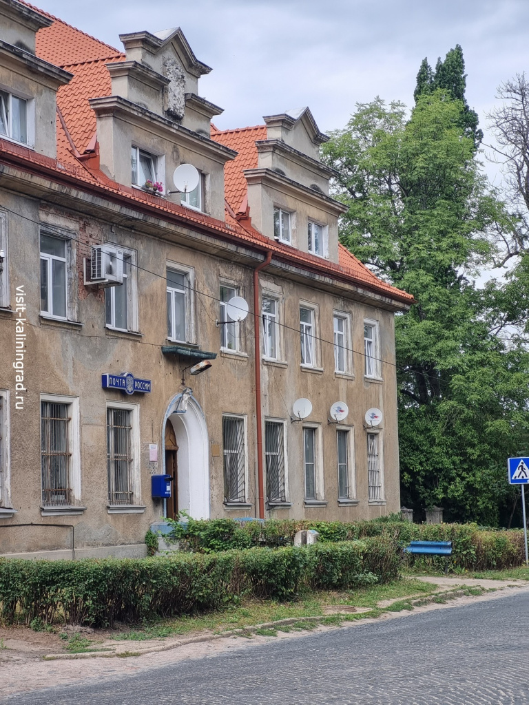Здание было построено в 1905 году одним из самых знаменитых архитекторов Восточной Пруссии Фридрихом Хайтманном. В украшении здания использованы ионические колонны, лепнина – выглядит монументально. В здании располагалась администрация. После 40-х годов – школа, которая позже стала школой-интернатом.