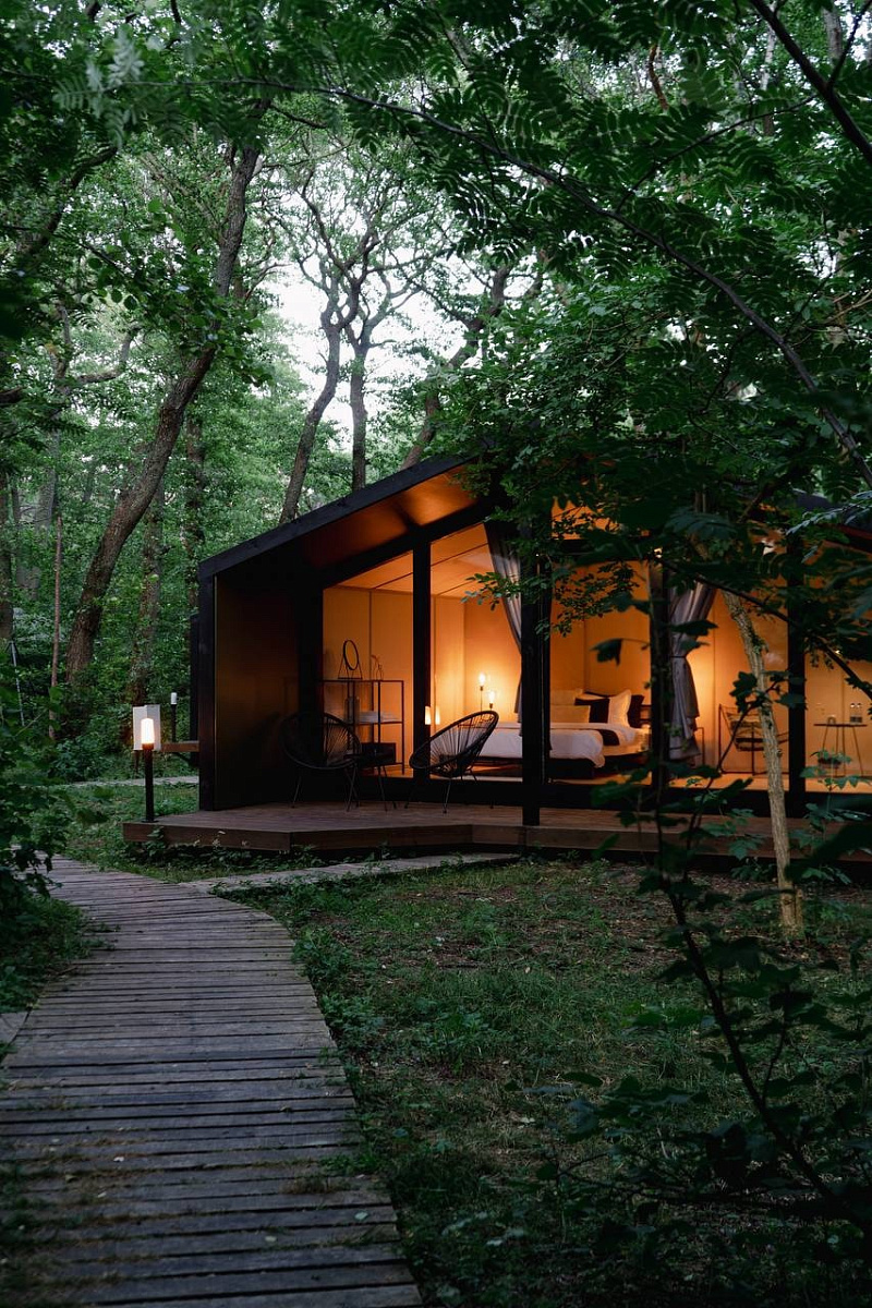 Glamping «Polyana» is located on the first line of the sea in the relict forest of the Curonian Spit, near the village of Lesnoy. It offers luxury bungalows with panoramic windows and modern interiors. This is the first adult glamping in the region, creating an atmosphere of peaceful relaxation away from the hustle and bustle of the city. There is a restaurant, sports grounds and bicycle rental on the glamping site. The territory is fenced and guarded.