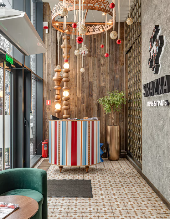 Russian folklore is combined with the European interior.