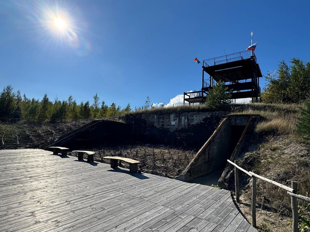 Маршрут протяженностью 1 км начинается у подножия бетонной дорожки (300 м), проходит через платформу с рельсами и куршской лодкой, деревянную дорожку (200 м), арсенал береговой батареи Рауль и завершается на обзорной платформе с видом на море и залив.