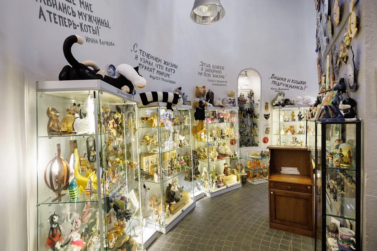 Музей славится крупнейшей в России арт-коллекцией на тему котов. В ней более 4500 экспонатов: игрушки, текстиль, аксессуары, брелоки, сувениры из Египта и Японии и многое другое. Хранителем коллекции стал рыжий кот Семён. Он сам пришел к музею и с тех пор живёт у башни.