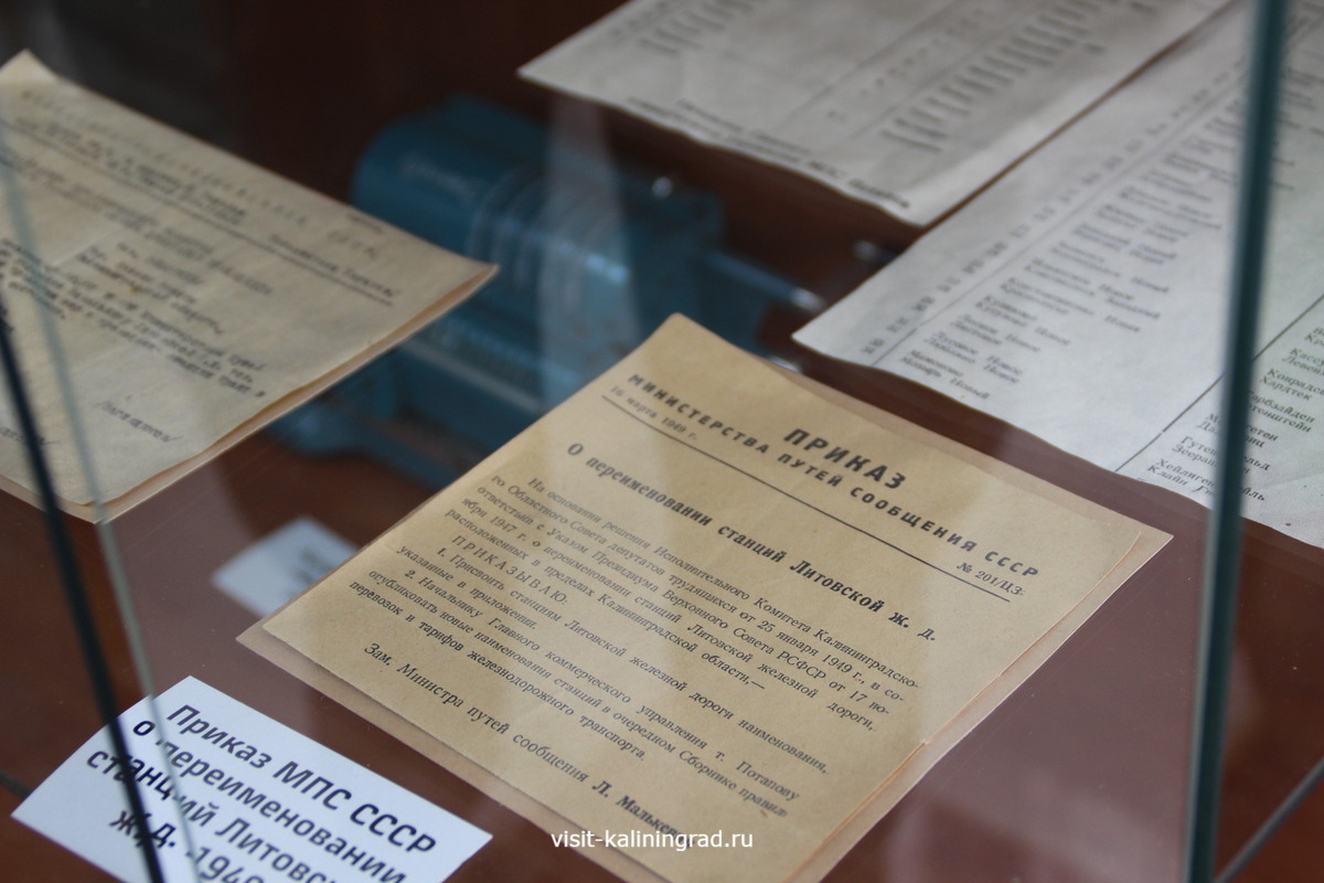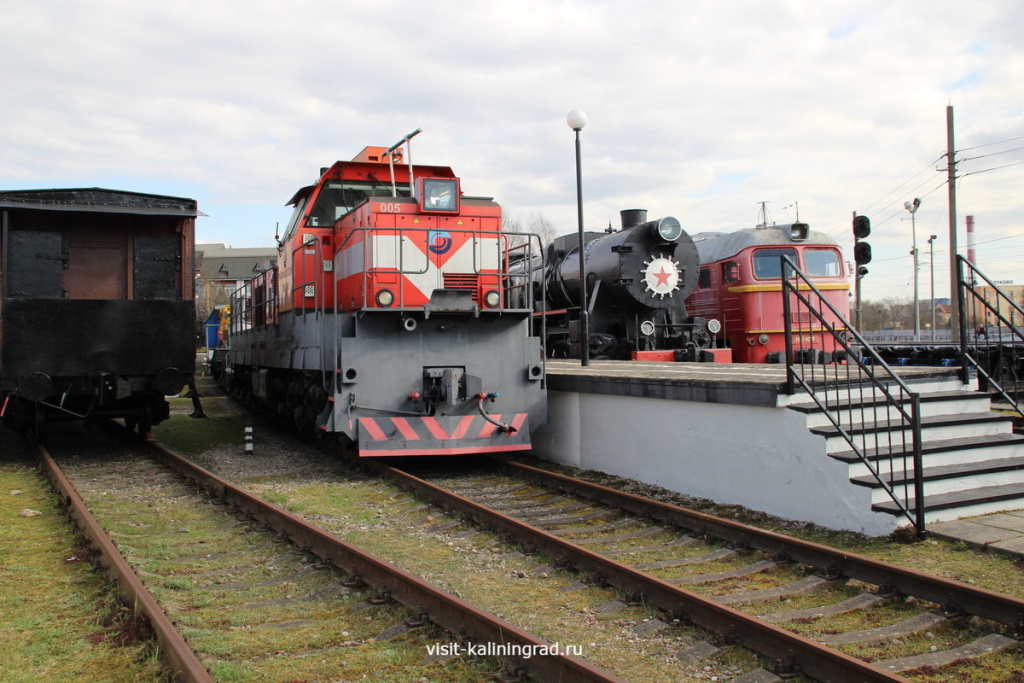В числе экспонатов - паровоз серии «Л», который по своим технико-эксплуатационным характеристикам долгие годы считался лучшим в СССР, более 20 лет верой и правдой служил калининградским железнодорожникам. Здесь же - паровоз германского производства довоенных лет, эксплуатировавшийся на железных дорогах Калининградской области с первых месяцев после победного штурма города-крепости Кенигсберг, в апреле 1945-го. Привлекает внимание посетителей необычного музея и вагон 1929 года выпуска, который использовался в составах бронепоездов, о чем свидетельствуют толстые, бронированные перегородки и бойницы для пулеметов.