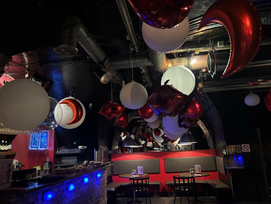 В кафе-клубе «Амстердам» создана атмосфера домашнего клуба без понтов. Здесь играет клубная музыка, диджеи делают свою работу без претензий. В меню есть вкусные блюда, а цены на них приемлемые. Есть комната для курения, которая создаёт дополнительную атмосферу. Вечером в баре играет музыка начала 2000-х годов.