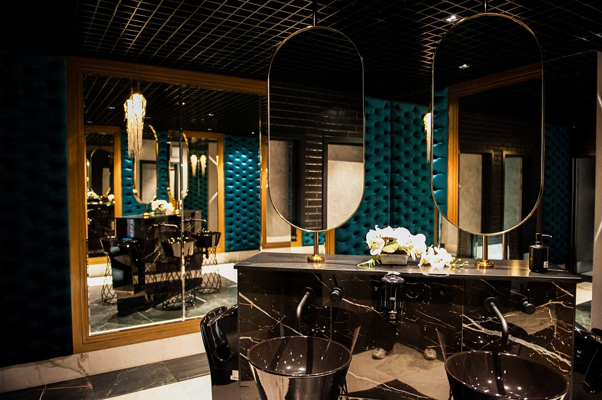 Интерьер ресторана отличают лаунж-атмосфера и эклектичный дизайн. В основном зале расставлены ярко-синие диванчики и вишнёвые кожаные кресла. Стены, частично выкрашенные в матовый чёрный, украшают зеркала-полусферы и живая зелень. Тему античного искусства подчёркивают барельефы и статуя Венеры Милосской, подсвеченная и огороженная на музейный манер, у барной стойки развешаны репродукции художников ХХ века.