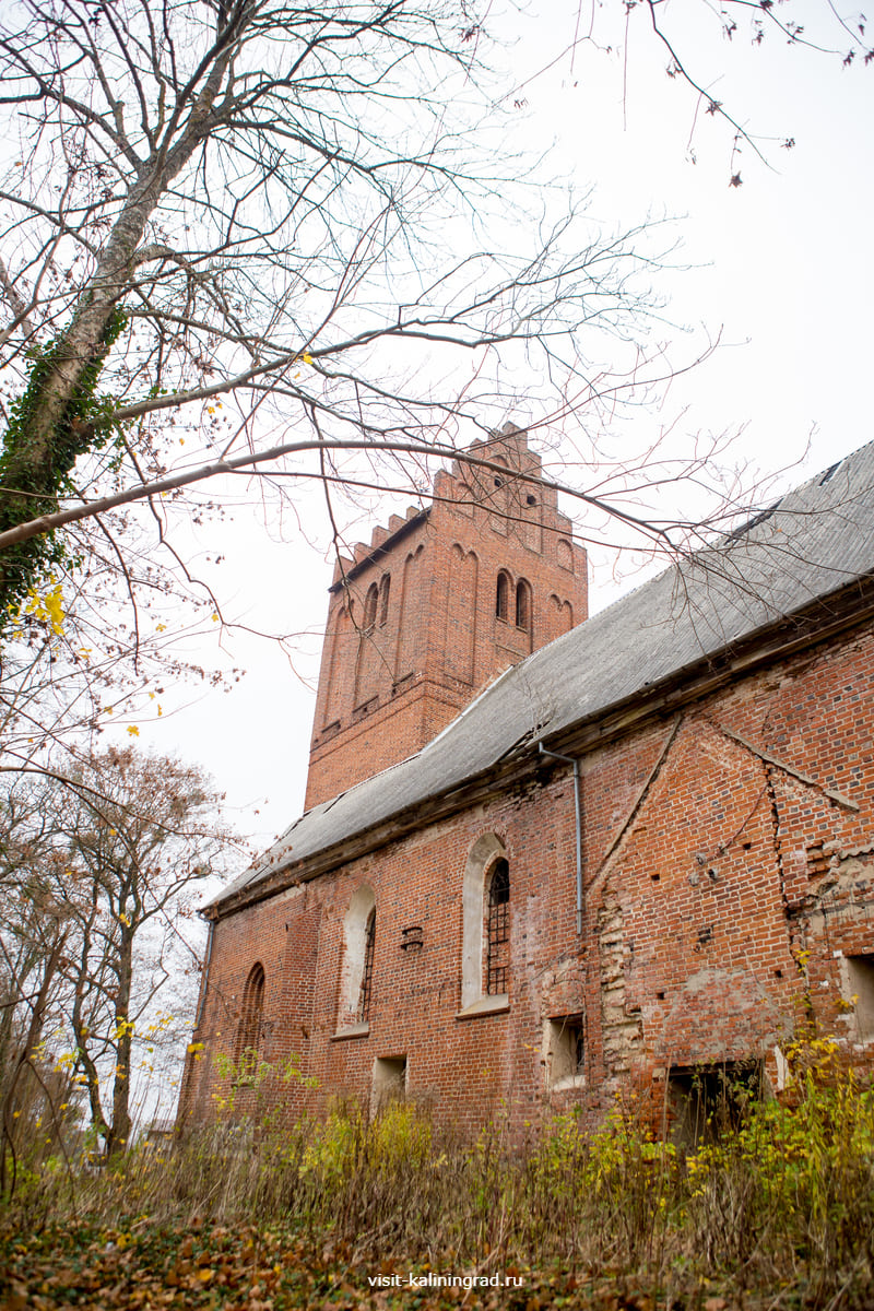 После Второй мировой войны южный притвор был снесен, портал в башню расширен для въезда автотранспорта. С востока была пробита стена и установлены ворота. Под холмом, на котором стоит кирха, находится несколько разграбленных и разрушенных склепов. Здание кирхи практически полностью сохранилось.