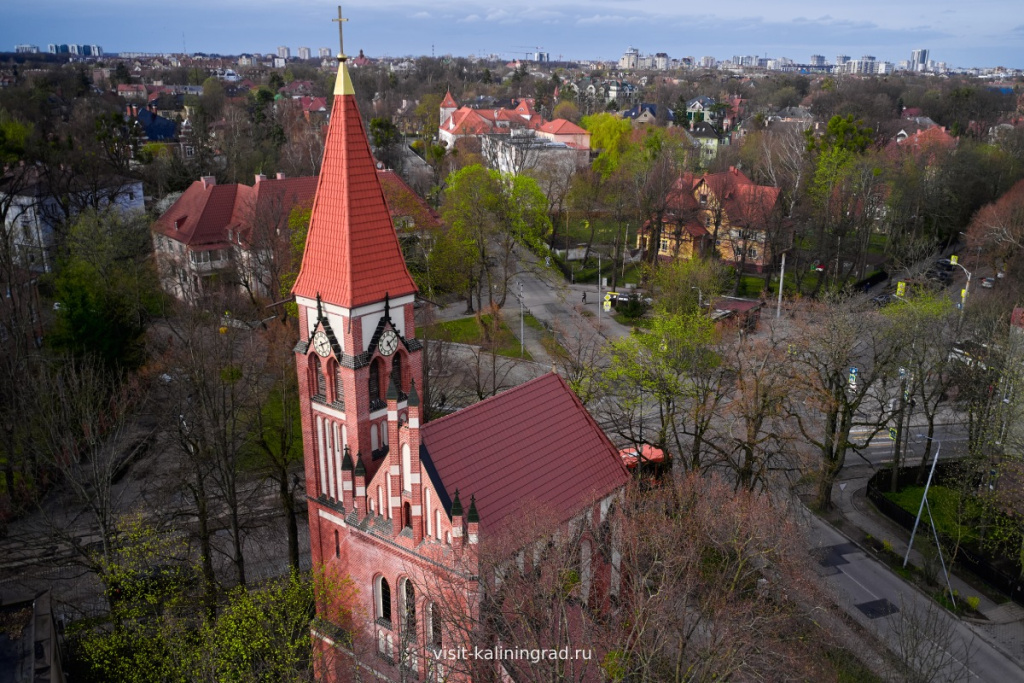 Капелла Святого Адальберта в районе Кенигсберга Амалиенау была построена в 1904 году во многом благодаря пожертвованиям общины. Руководил строительными работами архитектор Фридрих Хайтманн. Позже в 1932 году, когда к капелле была сделана пристройка, она получила статус Кирхи.
