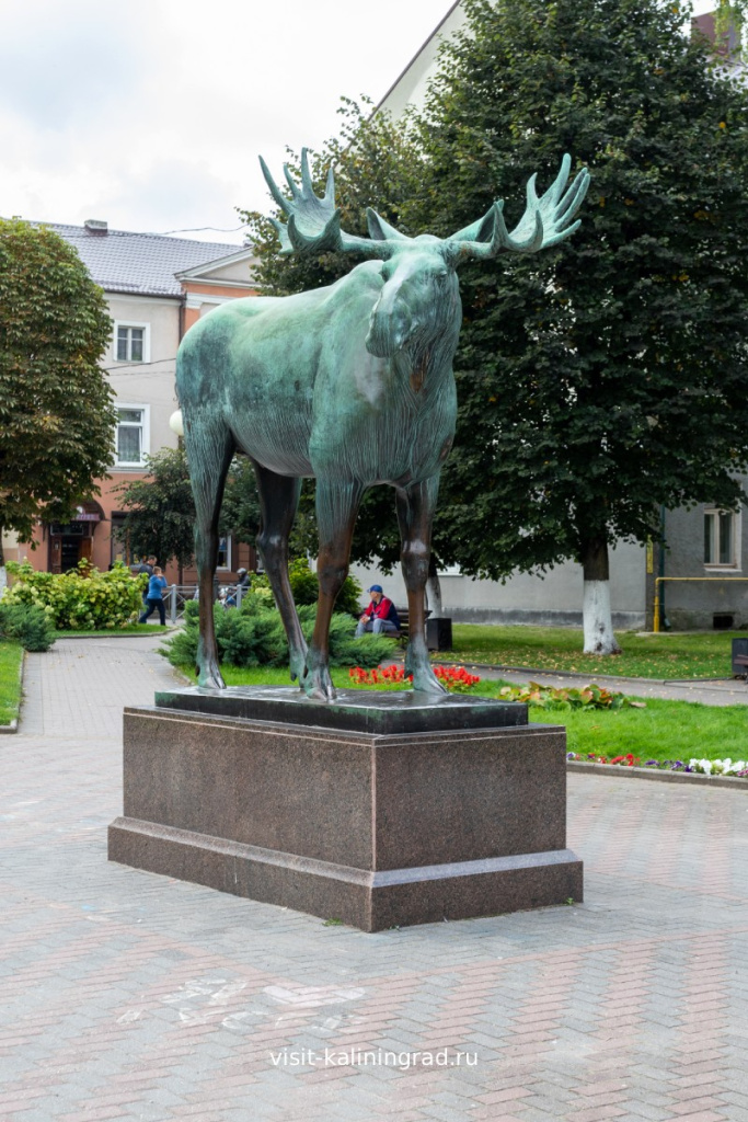 Скульптуру лося установили в 1912 г. на левом берегу реки Писсы, перед Большим мостом. После 1945 г. скульптура была вывезена из города и установлена в Калининградском зоопарке. На месте, где стояла скульптура, поставили памятник Герою Советского Союза С. И. Гусеву. Когда в городе появились первые туристы из Германии, они активно интересовались судьбой скульптуры, предоставляли документы о ее принадлежности городу. После недолгой переписки с администрацией Калининграда был предпринят отчаянный шаг — гусевские жители просто похитили лося из зоопарка. Скульптура установлена в сквере на ул. Победы 25 мая 1991 г.