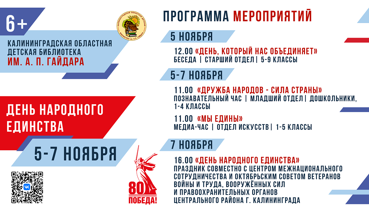 Мероприятия ГБУК «Калининградская областная детская библиотека им. А.П. Гайдара» на ноябрь 2025 г.