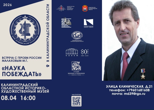 В рамках фестиваля «Дни армейской культуры» и проекта «Маршрут Суворова» (при поддержке Департамента культуры Минобороны РФ) приглашаем на встречу с Героем России Михаилом Георгиевичем Малаховым.
