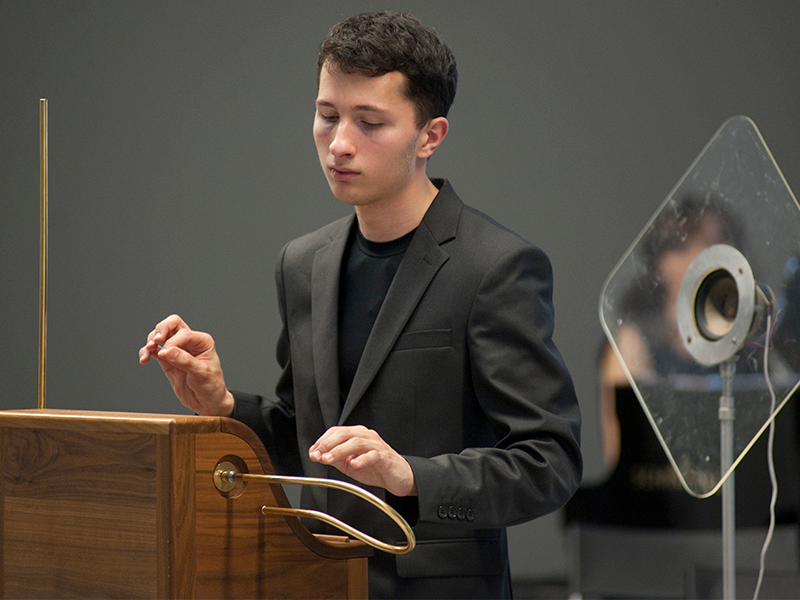За терменвоксом руководитель школы терменвокса в России — Пётр Термен, за органом — Мансур Юсупов.