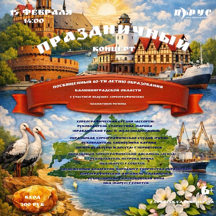 15 февраля в 14:00 мы приглашаем вас стать частью большого и вдохновляющего события – праздничного концерта, посвященного 80-летию со дня образования Калининградской области!