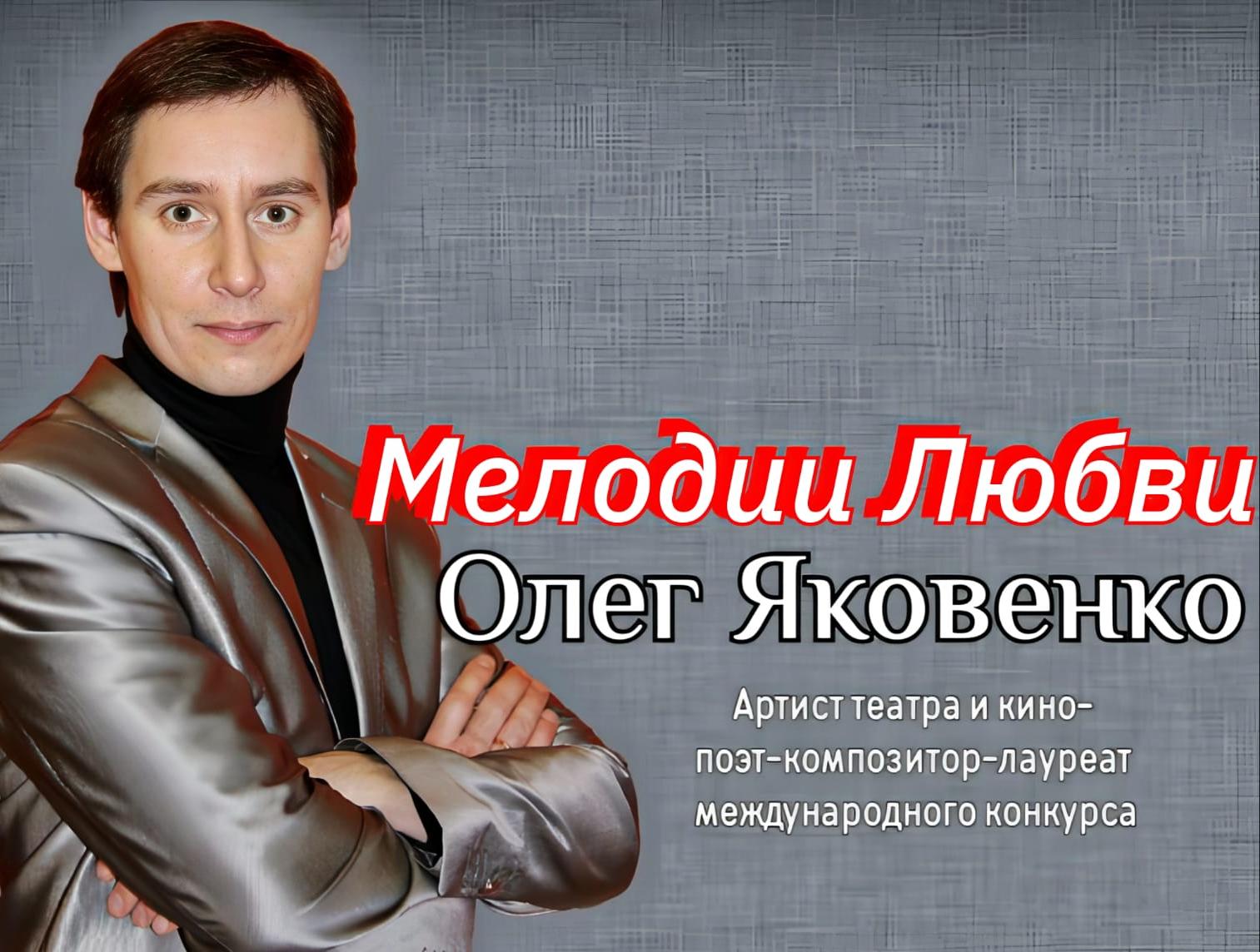 Олег Яковенко -актер театра и кино (сериалы «Склифосовский», «СЛЕД», «Глухарь», «Не родись красивой», «Улицы разбитых фонарей» и др.), автор-исполнитель, лауреат международных конкурсов приглашает на программу «Мелодии Любви» и это не просто музыкальная программа, а настоящая палитра эмоций: песни из репертуара М. Магомаева, Ш. Азнавура, И. Талькова, наших любимых ВИА Синяя птица, Цветы, Самоцветы и многих других...