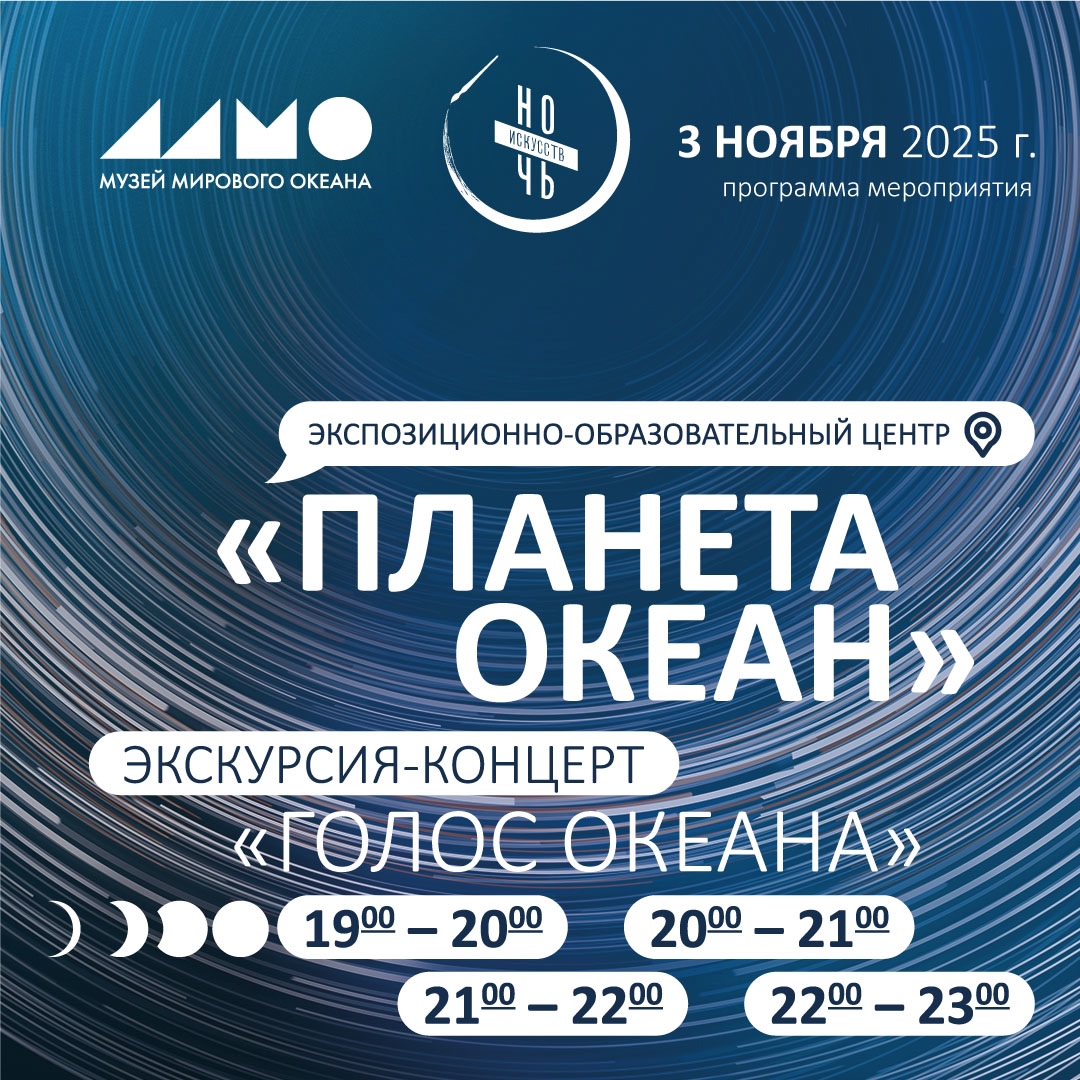 В Музее Мирового океана 3 ноября с 19 до 23 часов пройдет ежегодная культурно-просветительская акция «Ночь искусств». В этом году акция пройдет накануне Дня народного единства, а мероприятия развернутся в новом «доме» музея – экспозиционно-образовательном центре «Планета Океан».
