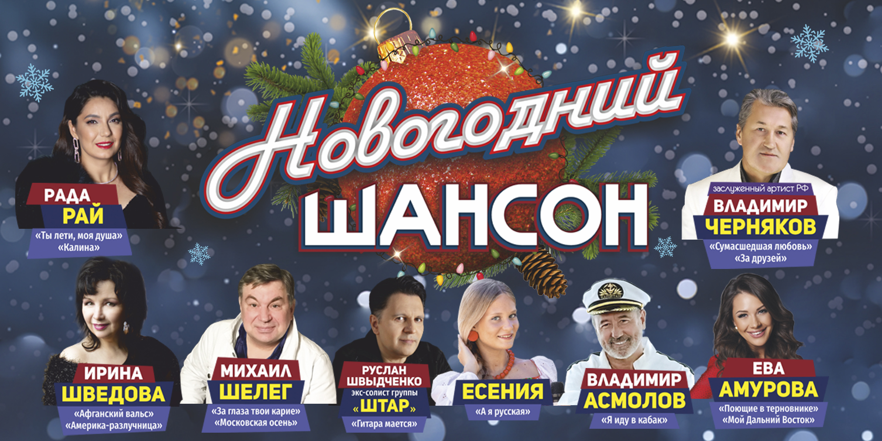 Для Вас выступит Ирина Шведова, неподражаемая певица, звезда российской эстрады. Экс-солист группы «Штар» Руслан Швыдченко исполнит лучшие цыганские песни, а также споёт дуэт с Радой Рай, которая подарит наслаждение зрителям своим голосом и песнями. Свои хиты исполнит Владимир Асмолов, один из самых известных и любимых артистов в жанрах шансон и городской романс. Новое поколение представит Есения, которая так же споёт сольно и покажет новый дуэт с Даниилом Соколенко. Радостные эмоции подарит выступление Натальи Которевой.