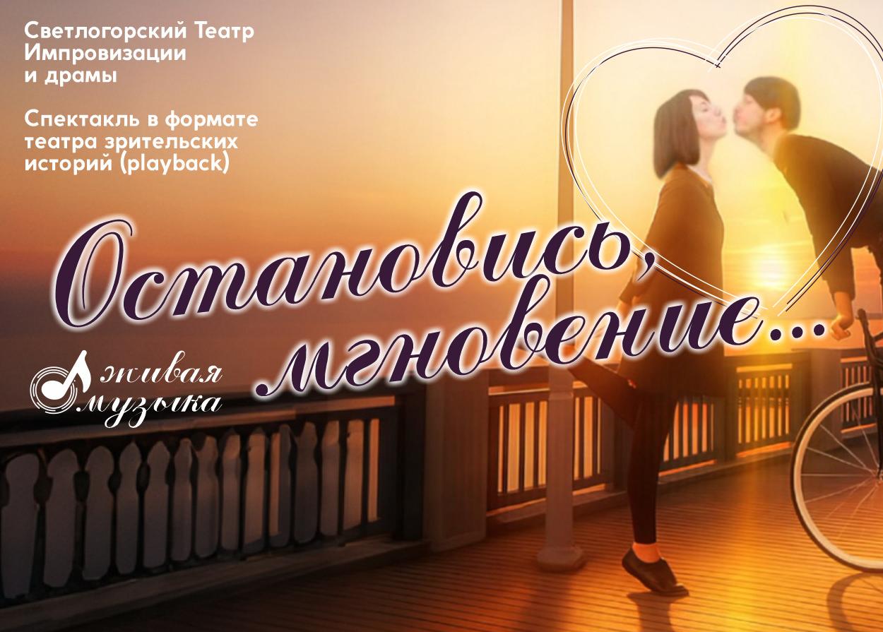 Светлогорский театр импровизации и драмы сыграет для вас плейбек спектакль "Остановись, мгновение".