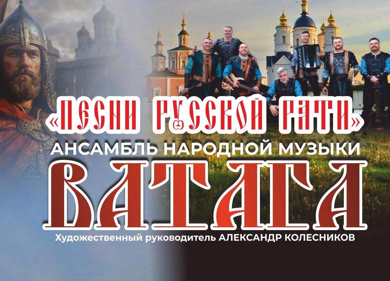 В рамках проведения VIII Балтийского культурного форума, на сцене театра эстрады "Янтарь-холл" выступят артисты Брянской областной филармонии ансамбль народной музыки «Ватага» с программой «Песни русской рати». Ансамбль народной музыки "Ватага" (худ. руководитель А.А. Колесников) — визитная карточка Брянщины. Творчество коллектива отличает патриотизм, любовь к Родине и яркие народные мотивы. Их сольный концерт — это настоящий подарок для зрителей всех поколений!
