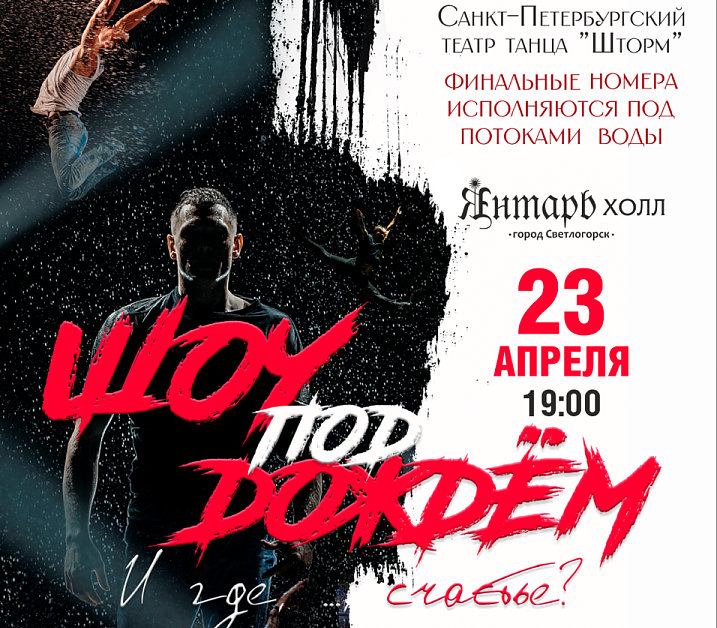 Санкт-Петербургский театр танца «Шторм» представляет спектакль «И где, …, счастье?». В шоу представлены танцевальные номера в сочетании монологов актёра на актуальные темы сегодняшних реалий, приправленные юмором и позитивом.