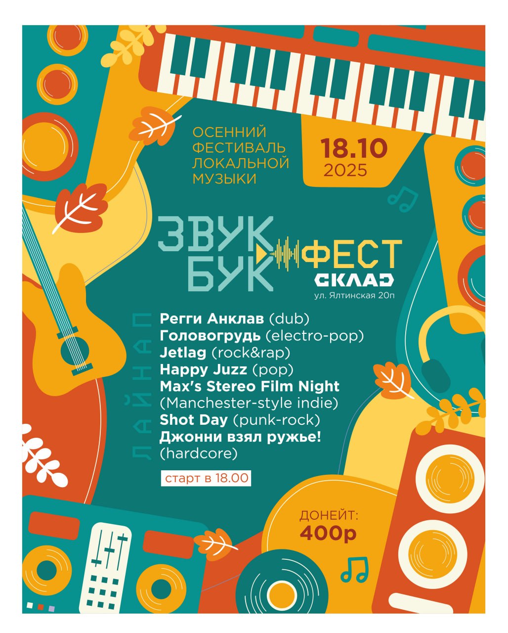 Осенний фестиваль оригинальной калининградской музыки Звукбук.Фест. В мероприятии примут участие семь коллективов из широкого спектра жанров: от электро-попа до хардкора.
