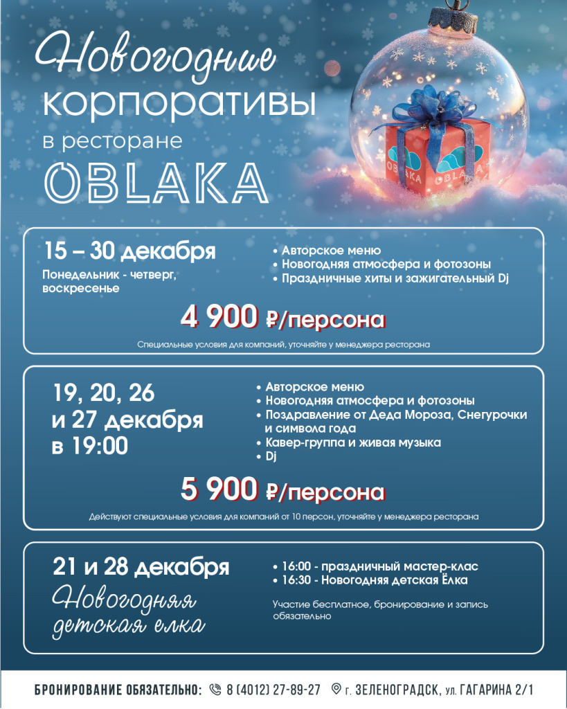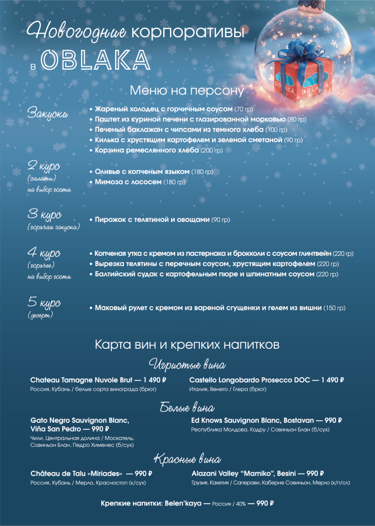 Создайте волшебную атмосферу для вашего новогоднего корпоратива в ресторане OBLAKA!
