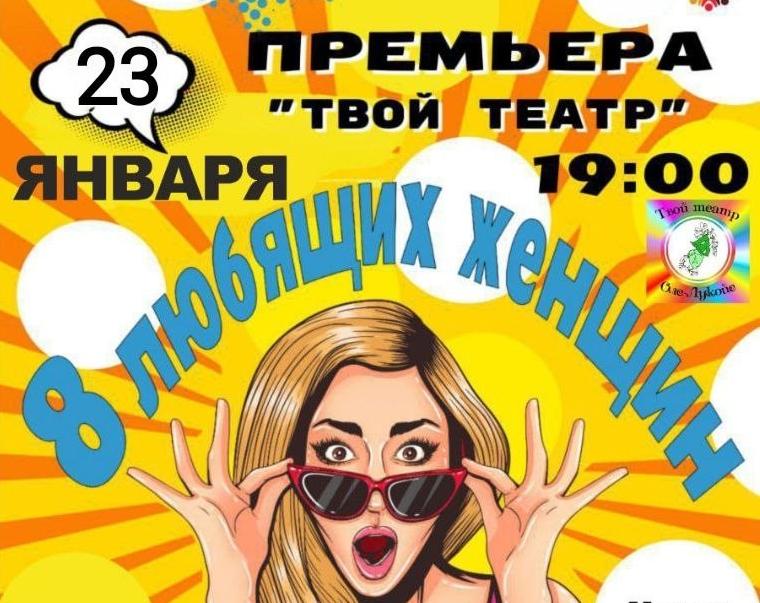 "Твой Театр" и " Оле-Лукойе" 23 января в 19:00 приглашают вас на ироническую комедию "8 любящих женщин" по одноимённой пьесе французского писателя Робера Тома.