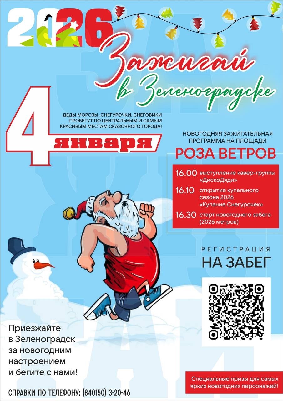 Новогодний костюмированный забег Дедов Морозов в Зеленоградске