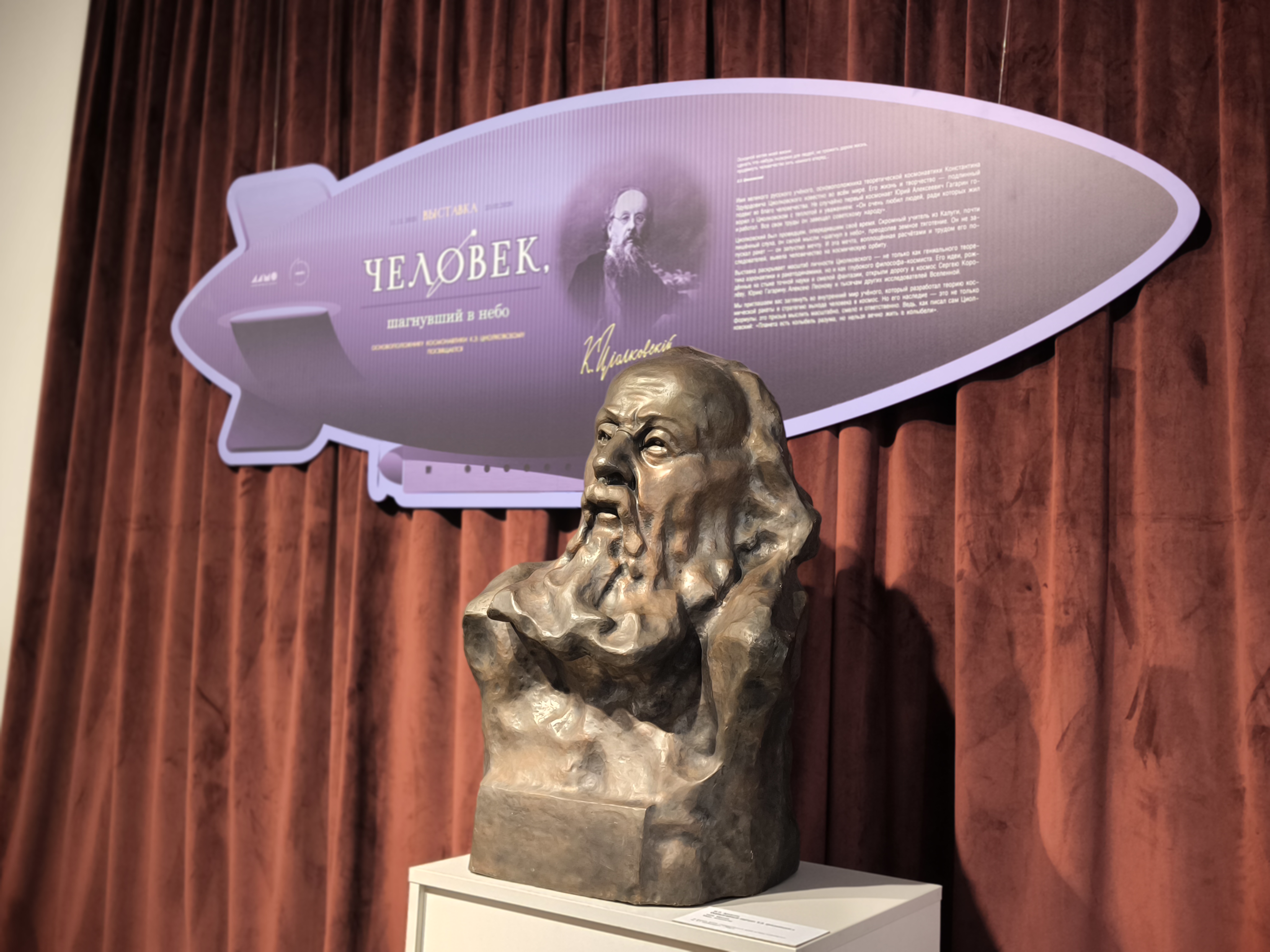 «Выставка «Человек, шагнувший в небо» – новый этап нашего сотрудничества с музеем истории космонавтики имени К.Э. Циолковского в Калуге с которым нас объединяет любовь к науке и космосу. В этом году мы представили совместный проект «Вижу, вижу небо», посвящённый полёту Павла Беляева и Алексея Леонова на космическом корабле «Восход-2». Новая выставка раскроет масштаб личности Циолковского не только как великого учёного, но и как философа-космиста. Его идеи, родившиеся на стыке точной науки и смелой фантазии, вдохновили многих исследователей Вселенной», – отметила заведующий отделом выставок и куратор проекта Марина Королёва.