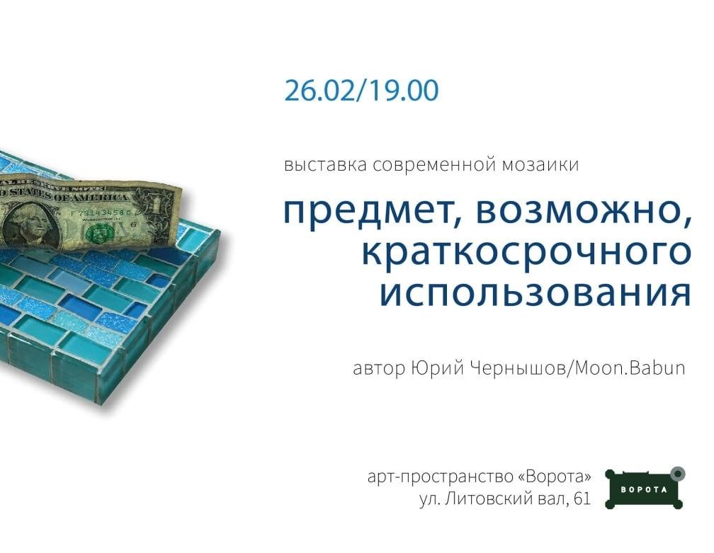 Выставка современной мозаики "Предмет, возможно, краткосрочного использования" от калининградского автора Юрия Чернышова.