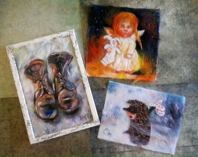 Гости увидят картины, поражающие палитрой ярких красок и сюжетами на различные темы, в которых сочетается красота и нежность шерстяной акварели. Это букеты цветов, пронизанные светом, нежные ангелы, пейзажи и портреты.