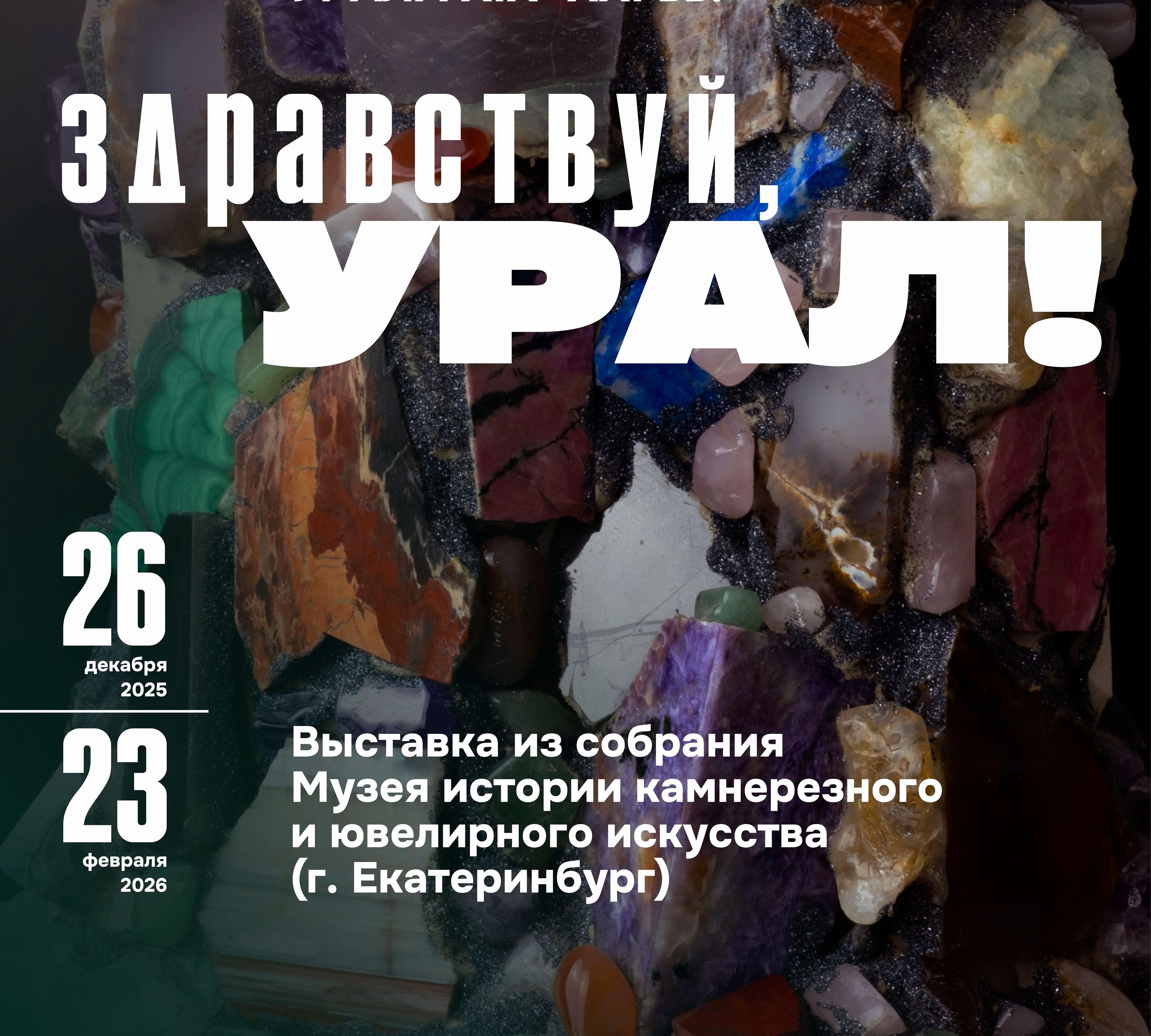 Спустя двенадцать лет Музей истории камнерезного и ювелирного искусства снова представляет уральскую ретроспективу художественной работы с металлом и камнем самому западному региону России. Для гостей Музея янтаря отобрано более 200 предметов: это фигуры из цветных камней, интерьерные предметы, «минералогические горки», «каменный зоопарк» (среди фигурок – петушок из сердолика, произведение фирмы К. Фаберже начала XX века), объемная и флорентийская мозаика, утонченные ювелирные украшения. Малахит, изумруд, демантоид, горный хрусталь, алмаз, рубин, гранат, яшма, родонит, змеевик, кварц: обилие драгоценных и полудрагоценных камней вдохновит самого взыскательного зрителя.