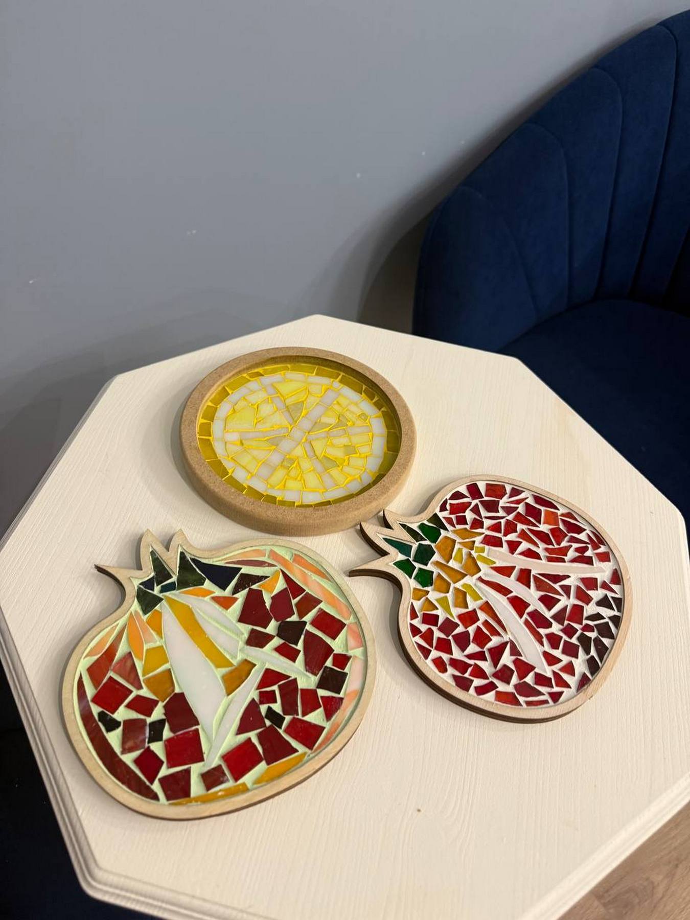 Вас ждёт работа с витражным стеклом, которое обладает глубокими переливами цвета и живой игрой света. В процессе вы познакомитесь с техникой ручной мозаики: каждый фрагмент вырезается из витражного стекла, аккуратно подбирается по форме и оттенку, выкладывается в композицию и фиксируется в выбранной форме. Это медитативная и захватывающая работа, которая развивает чувство цвета, композиции и внимание к деталям.
