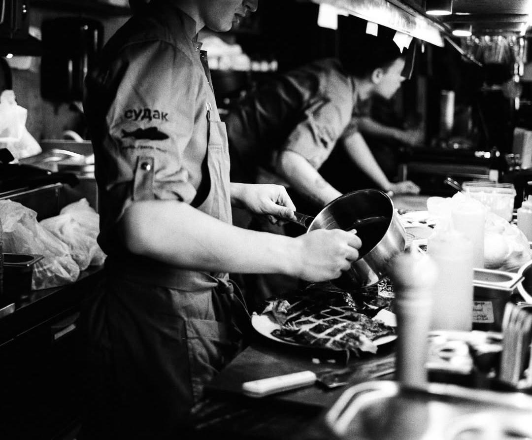Ресторан «Судак» на реке Преголи - это разнообразное рыбное меню, включая судака, скумбрию, камбалу и угря, приготовленных на открытом огне. Здесь акцент на качестве продуктов — рыба вылавливается местными рыбаками.