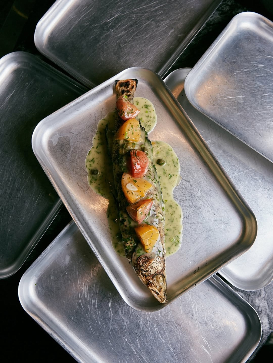 В меню есть как традиционные блюда, так и интересные вариации, например, скумбрия целиком или в виде рийета. Кроме рыбы, можно попробовать, например, тартар из фермерской говядины с оригинальными соусами. Ресторан предлагает широкий выбор вин и крепких напитков, включая настойки собственного производства.