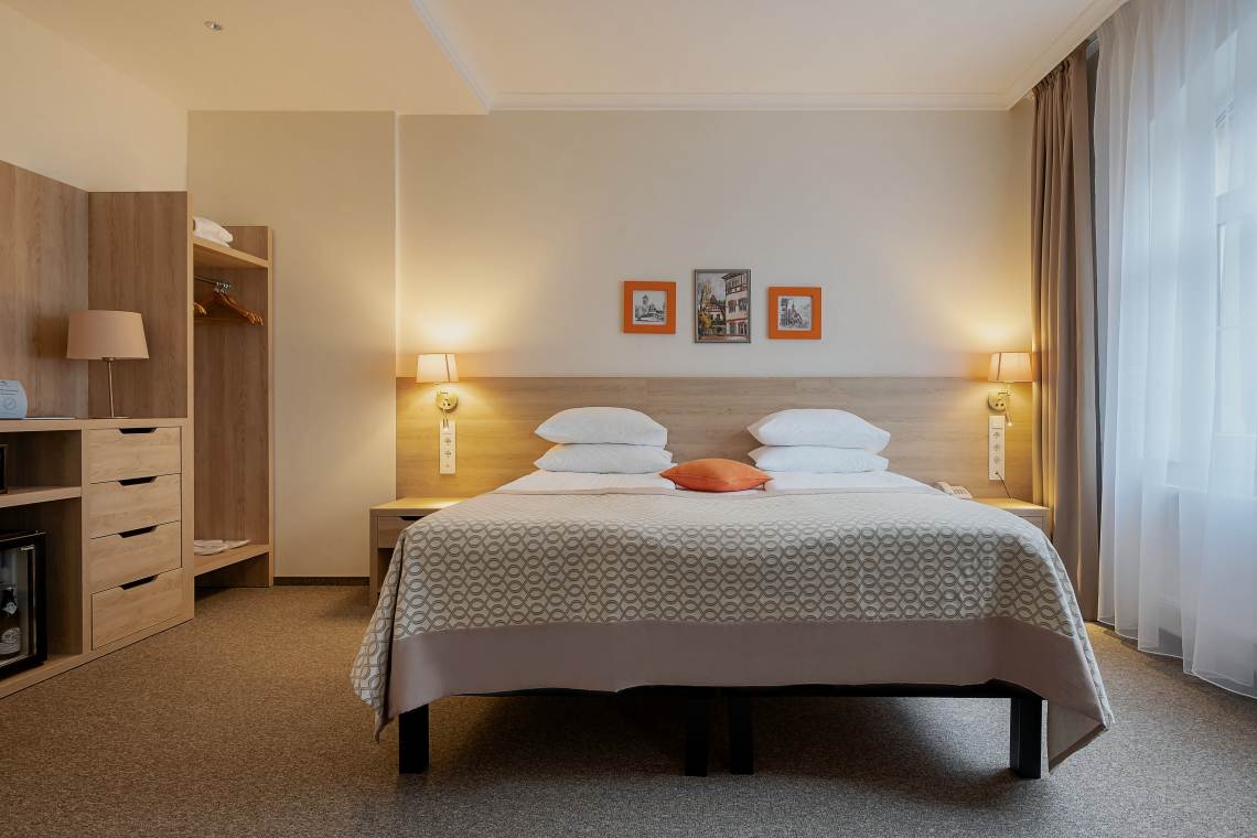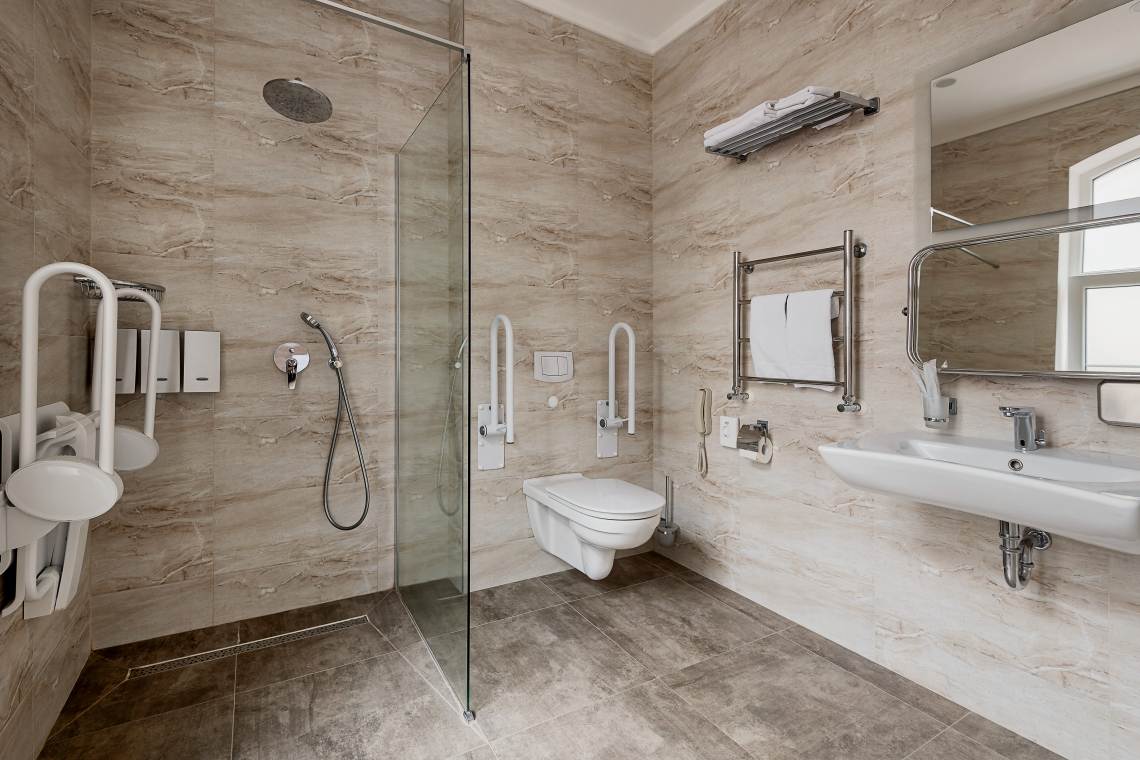 В отеле есть номер, который подойдет и для гостей с ограниченными физическими возможностями. Этот двухместный номер находится на первом этаже. Он уютный, стильный и очень удобный. В этом просторном номере все продумано до мелочей. Возможно размещение гостей на дополнительных местах.